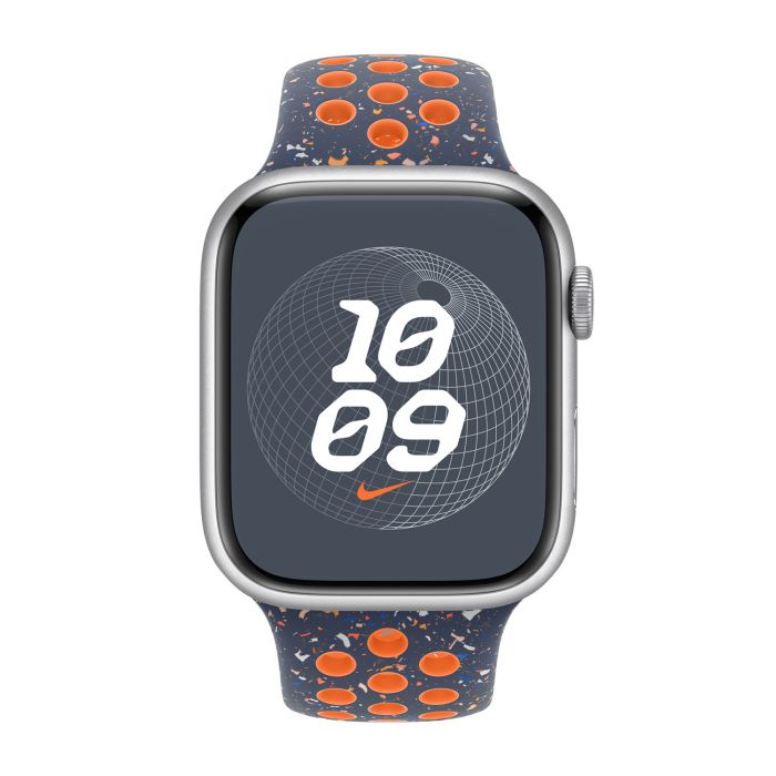 Made with compression-molded perforations for breathability, the Nike Sport Band is durable and strong, yet surprisingly soft. It features colorful flakes that create a randomized pattern, making each band completely unique. The smooth, dense material drapes elegantly across your wrist and feels comfortable next to your skin. A new aluminum pin-and-tuck closure gives the pin a fresh matte finish.