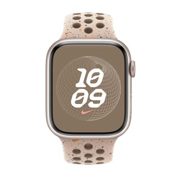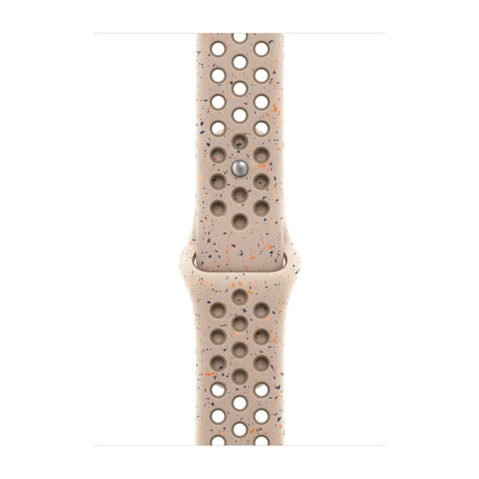 Made with compression-molded perforations for breathability, the Nike Sport Band is durable and strong, yet surprisingly soft. It features colorful flakes that create a randomized pattern, making each band completely unique. The smooth, dense material drapes elegantly across your wrist and feels comfortable next to your skin. A new aluminum pin-and-tuck closure gives the pin a fresh matte finish.