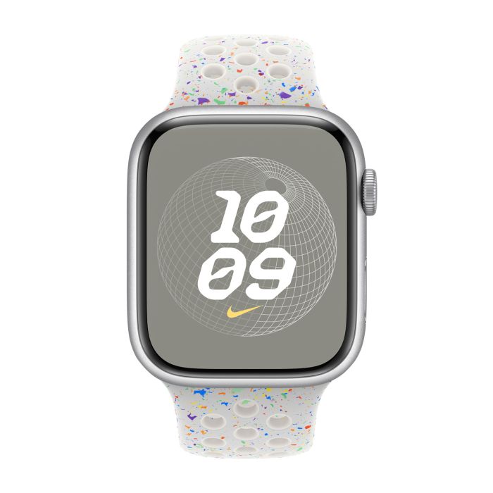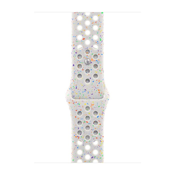 Made with compression-molded perforations for breathability, the Nike Sport Band is durable and strong, yet surprisingly soft. It features colorful flakes that create a randomized pattern, making each band completely unique. The smooth, dense material drapes elegantly across your wrist and feels comfortable next to your skin. A new aluminum pin-and-tuck closure gives the pin a fresh matte finish.