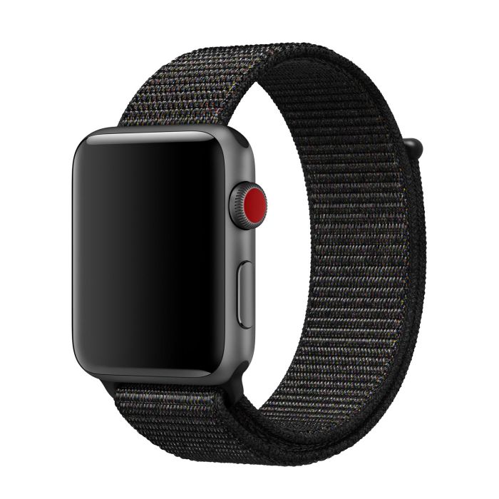 Woven Apple Sport Loop for Apple Watch in the color Black. This band is suitable for all 42 mm and 44 mm models.