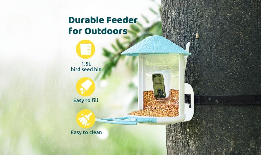 The Birdfy Feeder is built for all weather conditions and has an IP65 waterproof rating. Whether rain or shine, it functions reliably, making it perfect for year-round outdoor birdwatching.