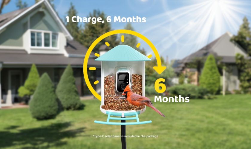 The Birdfy Feeder is powered by a solar panel that charges the built-in 5000mAh lithium battery, providing eco-friendly energy to keep your feeder running all year round.