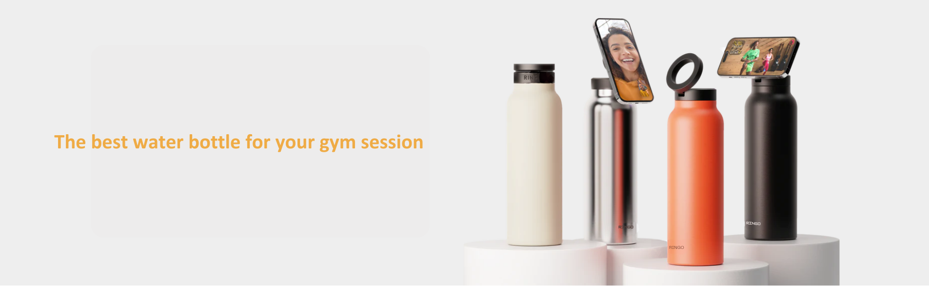 The lid of Ringo can be adjusted effortlessly to fit your personal standards. Whether your bottle is full or empty, the premium lid ensures that your phone stays secure, so that you don't have to worry about it during your workout.