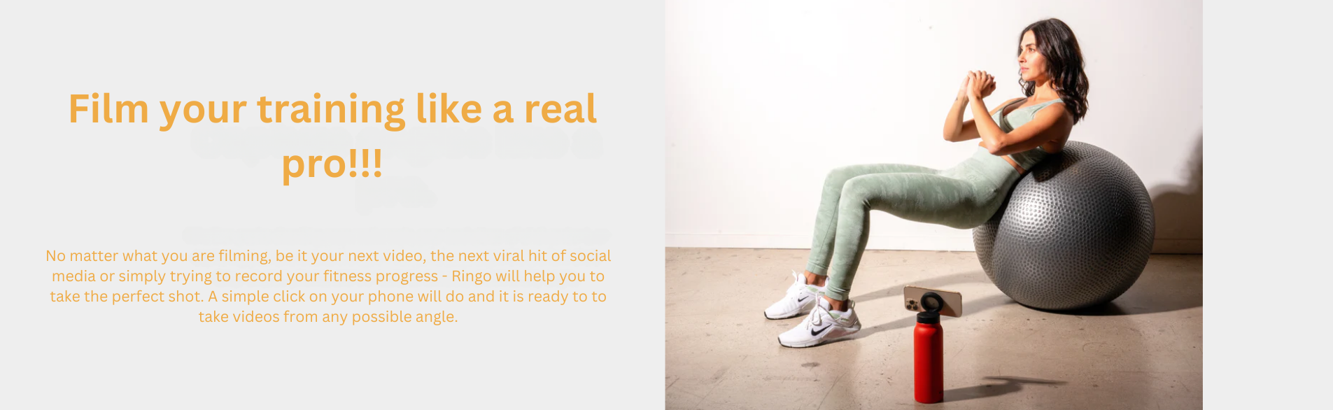 This is not just another water bottle, but a cleverly designed addition to your gym sessions which takes your workout experience to the next level. One of the most striking features of Ringo is the adjustable phone holder and its 90-degree hinge. This allows you to position your phone at the perfect angle so that you can easily follow your favourite workouts (of course, it is also possible to film your own training sessions).