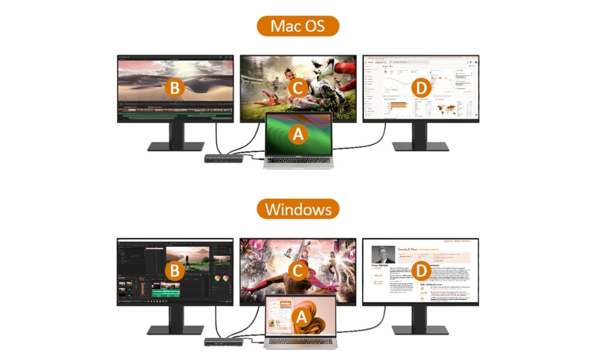 With support for 8K HDMI and dual 4K outputs, you can build a fully extended triple-monitor setup for maximum multitasking.