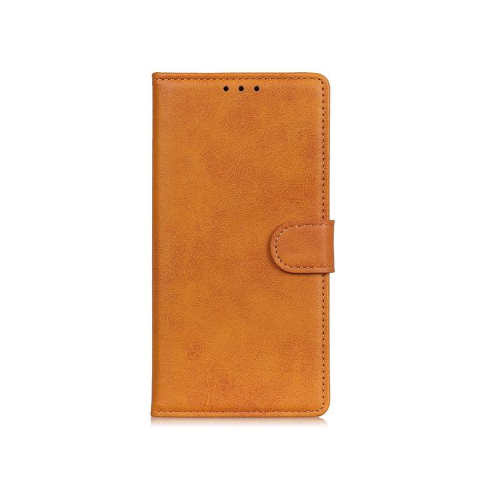 Casecentive Leather Wallet case with closure iPhone 13 tan