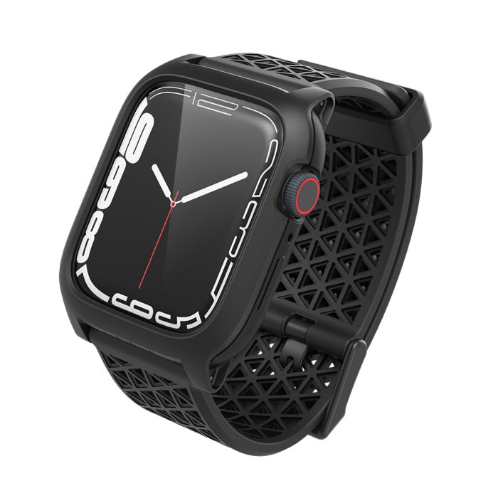 The Catalyst Active Defense Case offers military-grade drop protection up to 10ft (3m) with a sleek, ultra-light design. Featuring a hypoallergenic, breathable silicone sports band and an Aqua Drainage System, it’s built for both comfort and durability. With raised bezels protecting the display and digital crown, this case provides full coverage while remaining easy to install and remove. It's shock and scratch resistant, compatible with Apple Watch features, and supports 41mm and 45mm screen protectors.