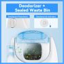 Closed waste bin with odor neutralizer and activator, installable on the side of the litter box, for effective odor elimination.