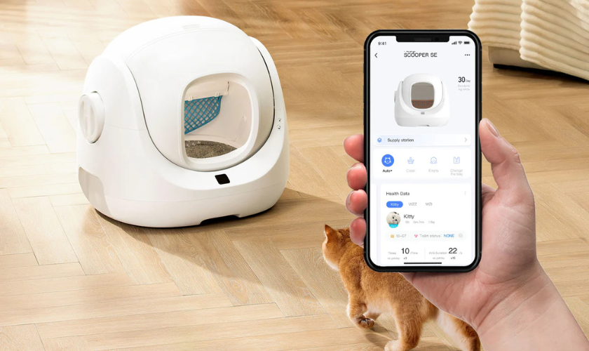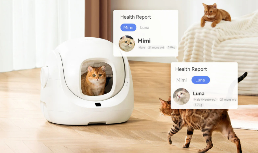 Monitor your cat’s litter box behavior in real-time, receive personalized health reports, and get notifications for low levels or a full waste bin.