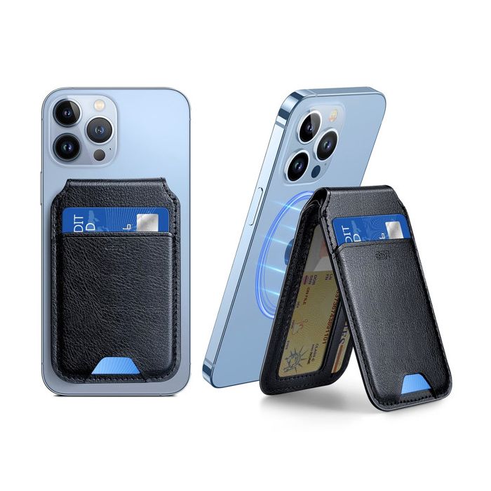 Enhance your iPhone experience with the ESR HaloLock Vegan Leather Wallet Stand. This accessory combines a wallet, a stand, and MagSafe compatibility, providing convenience and functionality in one stylish package. Crafted with high-quality vegan leather, it offers a luxurious feel while offering practical features to simplify your daily life.