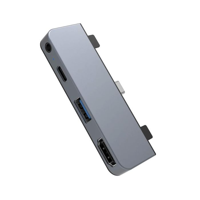 With the Hyper 4-in-1 USB-C hub iPad Pro grey you can change the USB port of your iPad Pro into no less than four different ports: a 3.5mm audio jack, USB-C Power Delivery, USB-A 3.0 port and a 4K30Hz HDMI connection. It is designed in such a way that you can continue to use your iPad when it is charged via the hub.