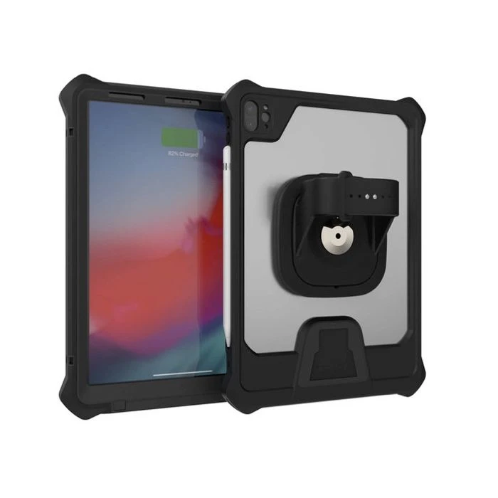 The Joy Factory's aXtion Volt Dock&Charge iPad Pro 11" is a rugged case for the workplace. The case protects the tablet from drops and splashes of liquids.