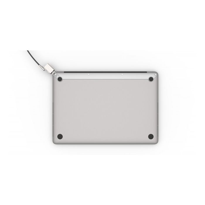 This system allows you to quickly secure a MacBook to an external object, such as a table leg or wall anchor. This helps prevent the laptop from being stolen or taken. The lock can be attached to a screw hole located on the underside of your MacBook. The accompanying galvanized steel cable can be formed into a loop and secured to an anchor point. With the included key, you can lock and unlock the system, ensuring that only you decide where the laptop goes.