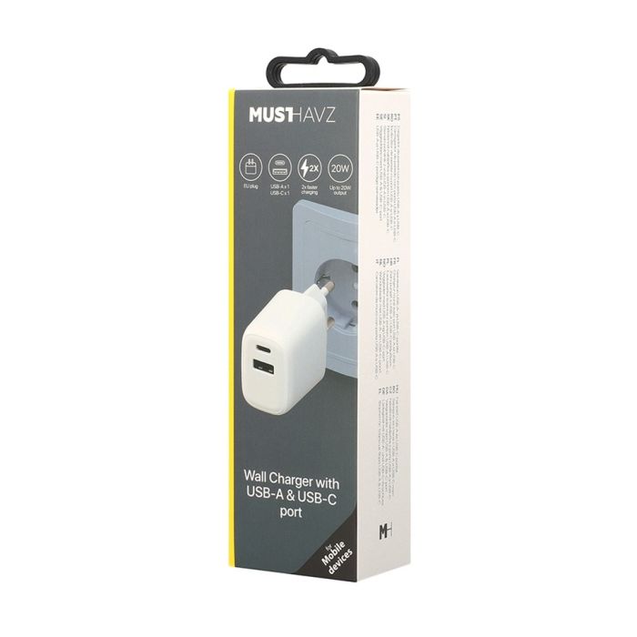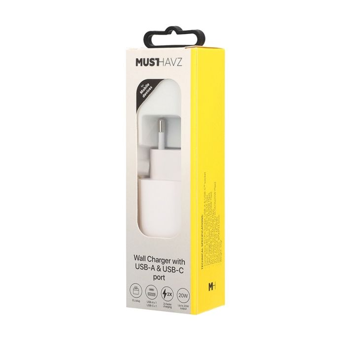 Musthavz Power Delivery oplader met USB-A en USB-C poort wit