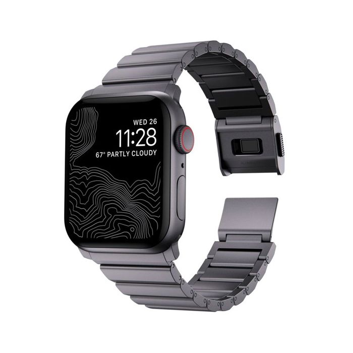 The Nomad Aluminum Strap Apple Watch 42 / 44 / 45 / 49mm Space Gray gives the Apple Watch a modern and sleek look while withstanding any adventure any time!