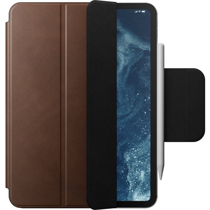 The Nomad Modern Folio Leather case combines sleek design with functionality. The case is made of high-quality leather and has a raised TPE bumper. The cover of the Folio case is made of reinforced fiberglass plates for long-lasting protection.