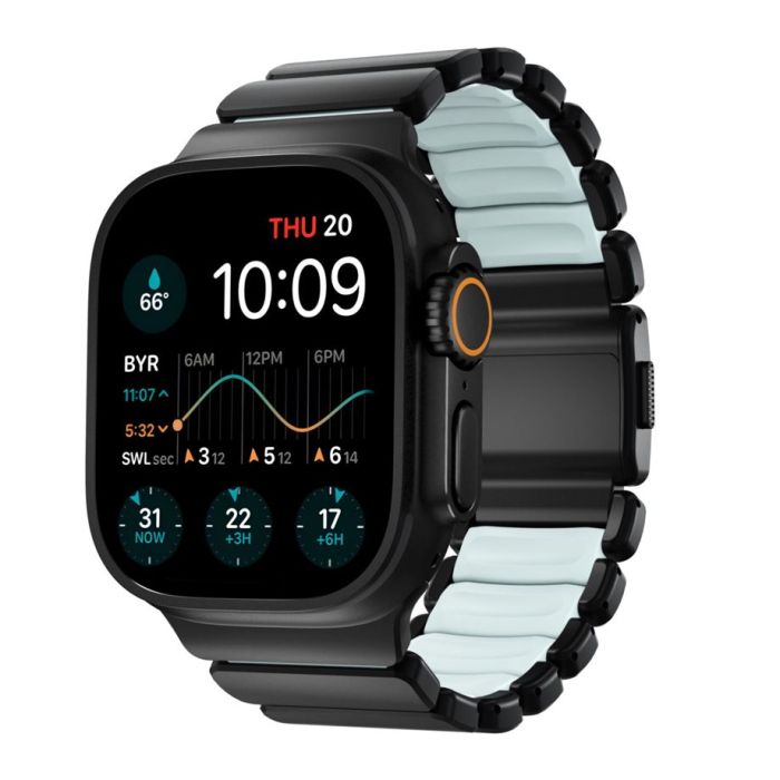 The Nomad Stratos Band Titanium is a premium hybrid Apple Watch band designed for everyday wear as well as sports and outdoor adventures.