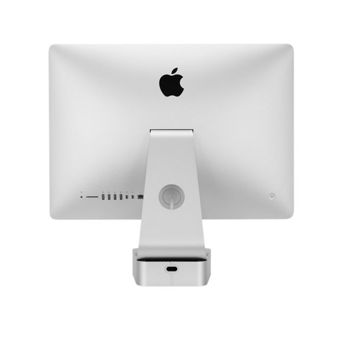 - A hole in the tray allows passage of a cable from the back of iMac, such as for an iPhone or iPad