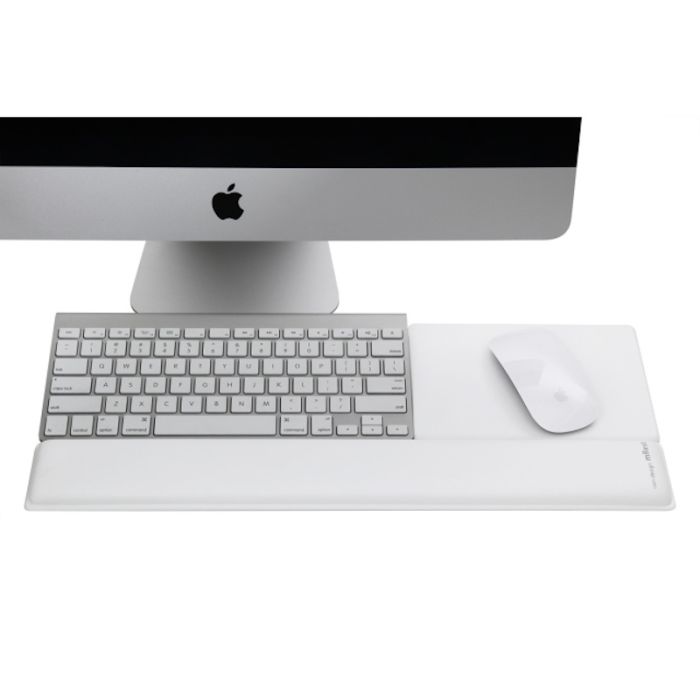This wrist rest is suitable for use with the compact Apple wireless keyboard and offers ample space for a mouse. This versatility makes it a practical choice for any workspace configuration, ensuring that you can maintain an ergonomic setup wherever you work.