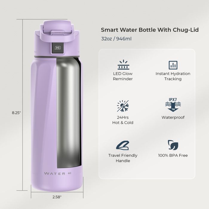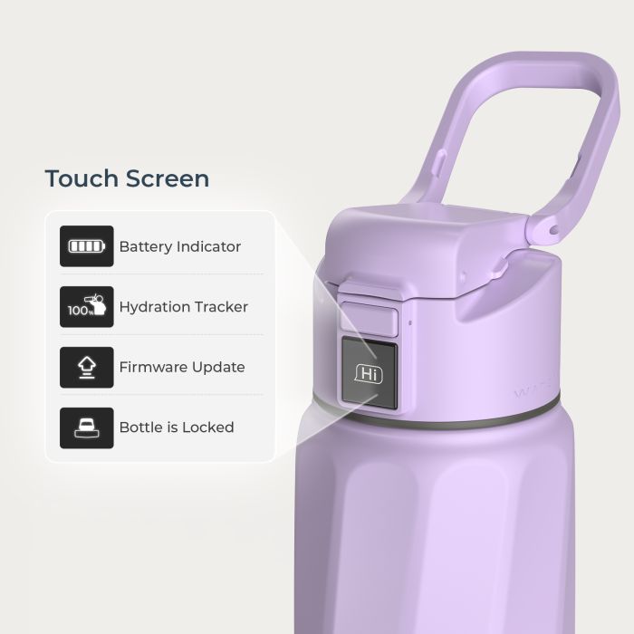 The WaterH Boost is equipped with an intelligent LED Touch Display on the bottle's lid that offers real-time updates on your daily water intake and the bottle's battery life. The LED Touch Display displays your pre-set intervals and gives push notifications reminding you to drink regularly, ensuring you never forget to hydrate. The Bluetooth connectivity links the bottle to the WaterH app that tracks your hydration stats in detail. Never miss a sip with the WaterH Boost's dual reminder system. Plus, every time you open the bottle, it greets you with a friendly "Hello" and displays your progress on its clear digital screen.